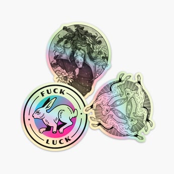 Holographic Sticker Pack - Fuck Luck, Three Hares, Astral Bat