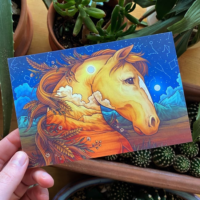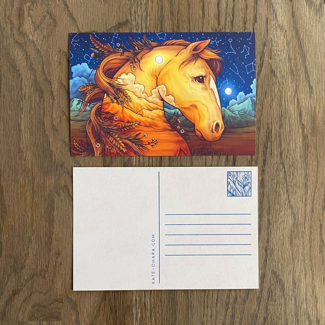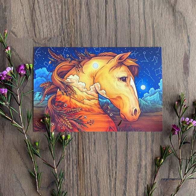 4"x6" postcard of my 'Bronco' illustration, printed on thick card stock paper with a matte finish. These have a blank backside with a postcard layout. Can be used as a postcard, or framed as a mini art print.