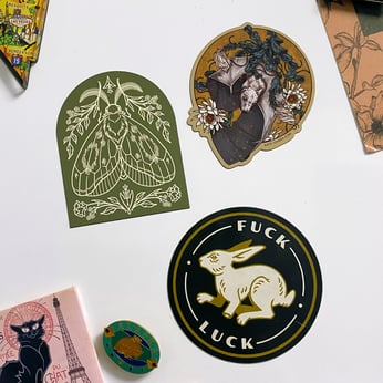 Holographic Sticker Pack - Fuck Luck, Three Hares, Astral Bat