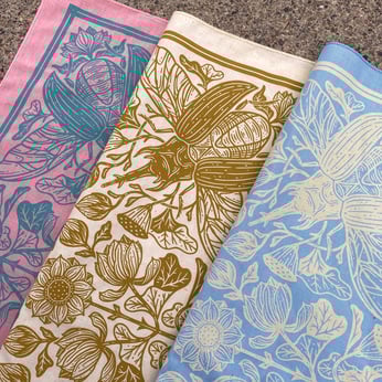 Lotus & Beetle Bandanas - Saffron, Periwinkle, Buttermilk